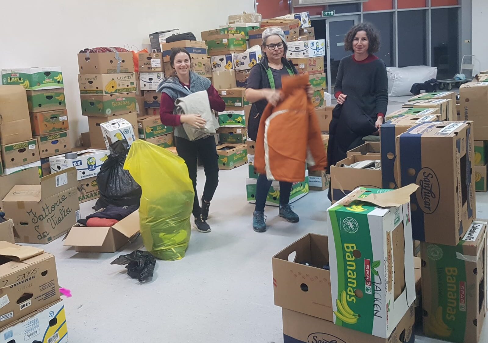 Our sorting office in Güssing is bustling with activity: all donations in kind are sorted and bundled here. Thanks to all helpers!